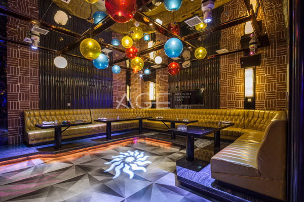 包房設(shè)計(jì)中,楊彥設(shè)計(jì)師根據(jù)功能定位打造出不同風(fēng)采的包房。紅色卡座的包房采用黑白組砌的地面,尊貴典雅的金屬隔條,大氣優(yōu)雅的紅色真皮卡座,凸顯優(yōu)雅氣質(zhì)。黃色卡座包房則自帶甜蜜氣息,地面明暗結(jié)合,吊頂采用玻面材料,搭配炫彩的燈具,仿若漂浮的氣球,營(yíng)造出幸福甜蜜的氛圍。