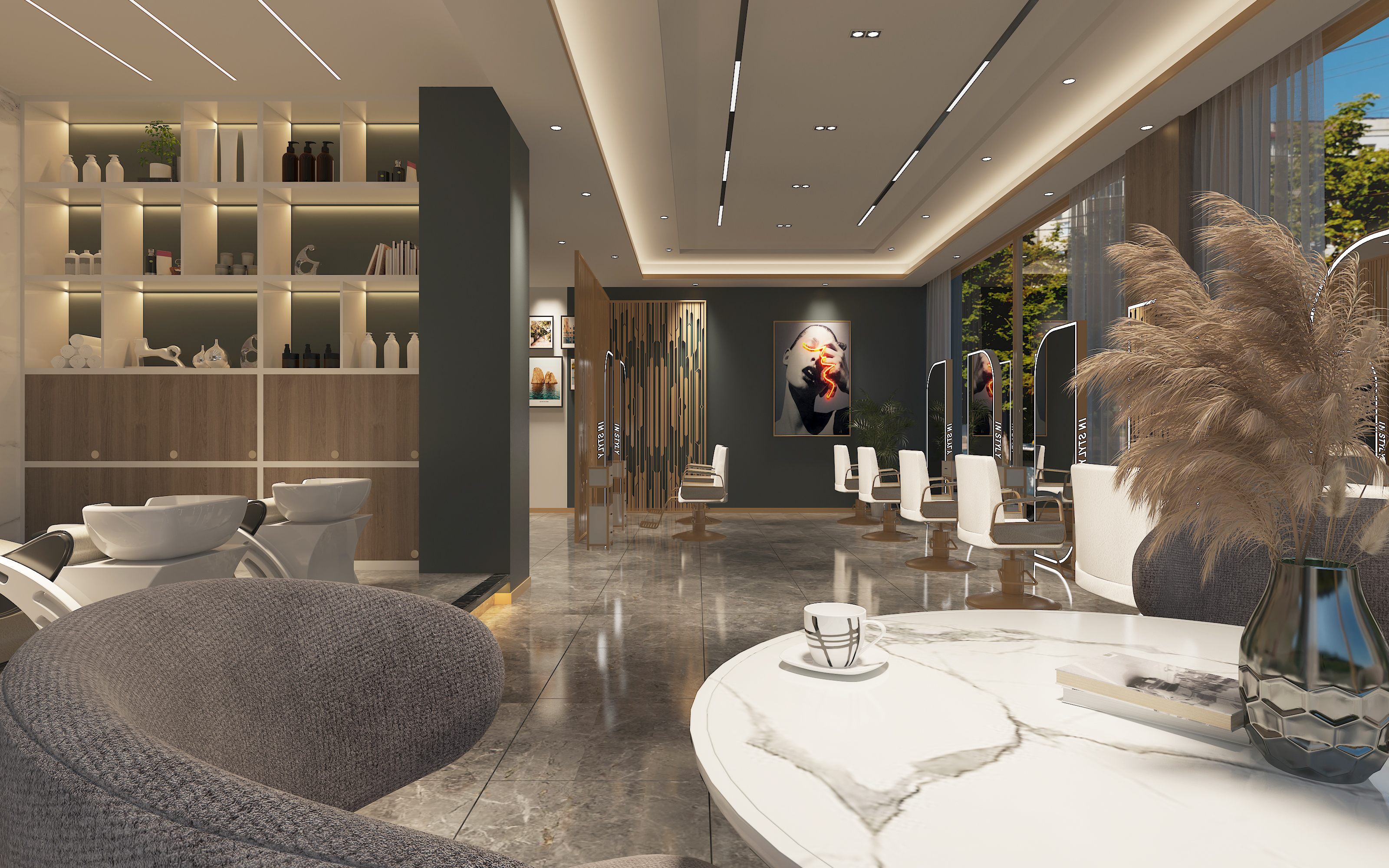 在其他商業(yè)區(qū)域,譬如健身房、理發(fā)店、臺球室等功能區(qū),為了保持水療會所裝修設計整體的淡雅高貴格調,設計師在設計這些功能分區(qū)時都采用了大面積留白的設計方式,用空間面積的寬廣明亮和白色系的簡約建材搭配,實現(xiàn)一加一大于二的設計效果,讓每個功能區(qū)都呈現(xiàn)出典雅大氣的設計風格。