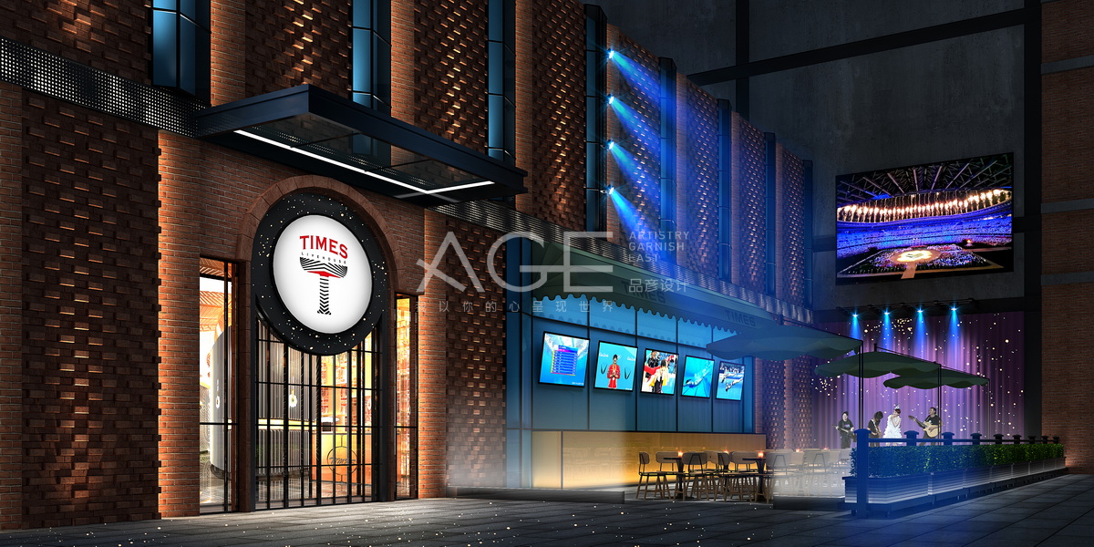哈爾濱Live house門面全貌,全新流行元素,還加入歐范更顯有氣場,光影與色彩交融增添了動感與活力,整體色彩主打暗色,但卻有突顯出鮮明的層次感,左右區(qū)域設(shè)計別樣,卻又相呼應(yīng)。