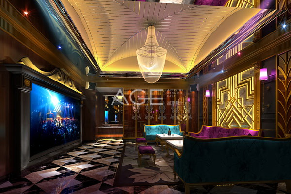 包房空間,巨大的投影屏幕帶來(lái)震撼視覺(jué),正中網(wǎng)狀吊燈,模仿歐式券供造型,內(nèi)凹的吊頂拉高視覺(jué)。四周墻面多以玻璃覆蓋,點(diǎn)綴花紋。地面仿大理石地磚,鋪上設(shè)計(jì)師精心選擇的地毯。整體空間溫馨大氣。