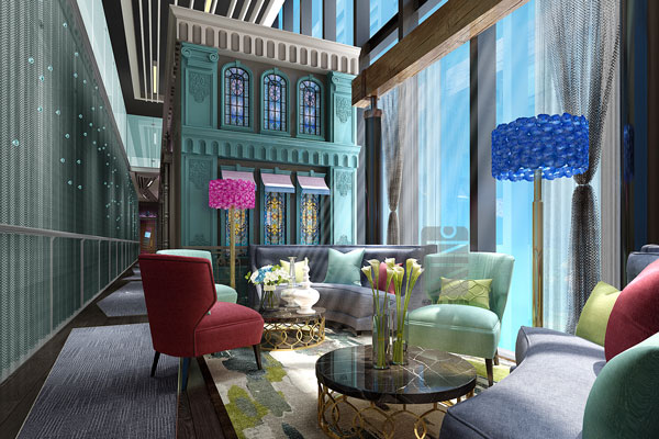 烏節(jié)路位于新加坡中心位置,作為多種文化林立融合的泛娛樂區(qū)域,如何在這寸土寸金又充滿各種文化浪潮的街區(qū)中建立起一座同樣融入其中又超脫其外的小型KTV,這就極其考驗(yàn)KTV設(shè)計(jì)公司的設(shè)計(jì)功底。像本案新加坡K Star 量販KTV,設(shè)計(jì)師在有限空間內(nèi)運(yùn)用藝術(shù)表達(dá)方式,將多種文化進(jìn)行融合簡(jiǎn)化表達(dá),讓最終呈現(xiàn)的效果與整個(gè)烏節(jié)路的整體氛圍相得益彰。