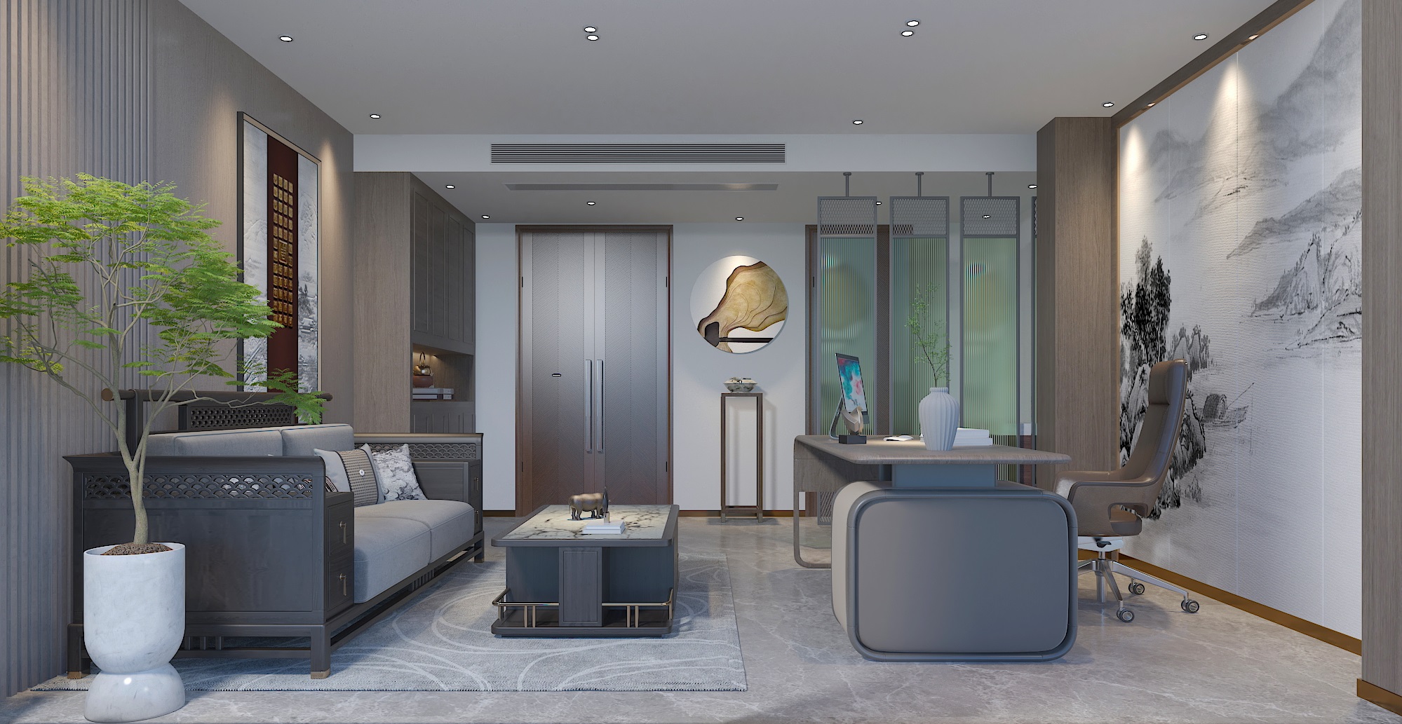 辦公室設計為貼近現(xiàn)代辦公所需,其裝修設計注定要兼具辦公實用性外,還應該與茶室整體裝修氛圍相一致。因此設計師在茶室辦公室的設計上,采用了相對簡約和色系一致的現(xiàn)代辦公用品,讓其融入整體由中式傳統(tǒng)建筑元素組成的淡雅古韻的設計環(huán)境中,不顯突兀。