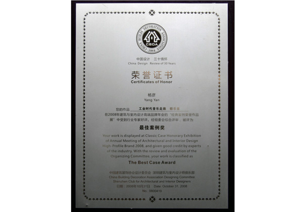 2008年-工業(yè)時(shí)代酷吧榮獲 最佳案例獎(jiǎng)