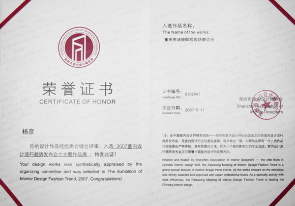 2010年度中國十佳娛樂空間設(shè)計(jì)獎(jiǎng)
