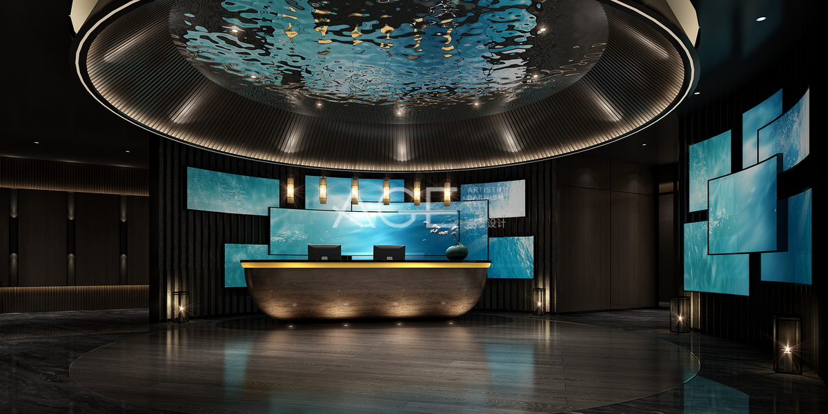 放眼望過去,大堂接待室是現代簡約風格,給人一種時尚、整潔、舒適、大氣場的感覺。整體設計為暖色調,加入圓和方的元素,顯得大方、自然?;y的大理石采用兩種元素,中間用棕色規(guī)劃出一個大大的圓而形成前臺接待區(qū)域,個性的凹造型吊頂設計與地面圓形設計相呼應,讓這個區(qū)域空間更顯立體感。前臺區(qū)域設計立體感十足,環(huán)形背景墻上掛幾塊長方形的顯示屏,與橢圓底座的前臺形成方中有圓、圓中有方的錯落感。前臺斜側面一處墻體與前臺背景墻一樣放置幾個顯示屏,帶給人一種相呼應的既視感。